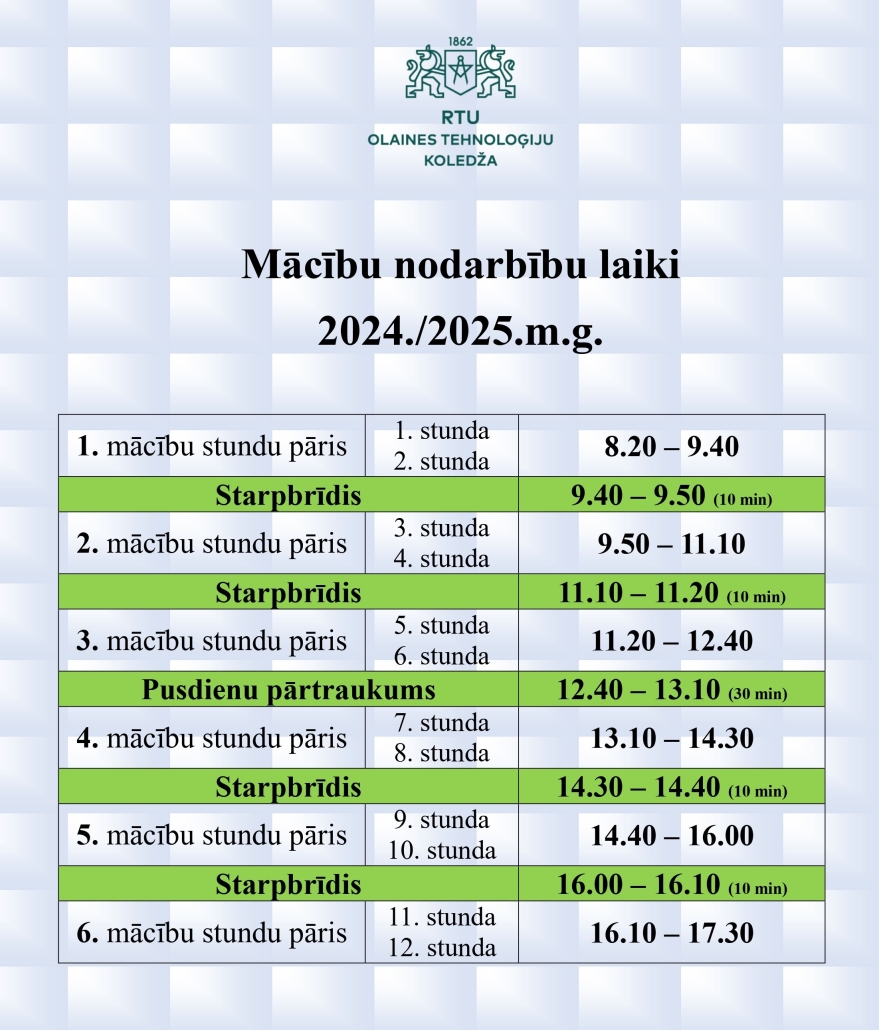 Lekciju un mācību nodarbību laiki.